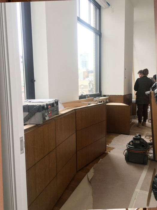 Working closely with the contractor and millworker, we remained actively engaged at the site for the duration of construction, specifying placement of decorative knobs and pulls, approving wood samples to perfectly match the existing floor color, advising on integrated light fixtures and ensuring all design details were executed to perfection.